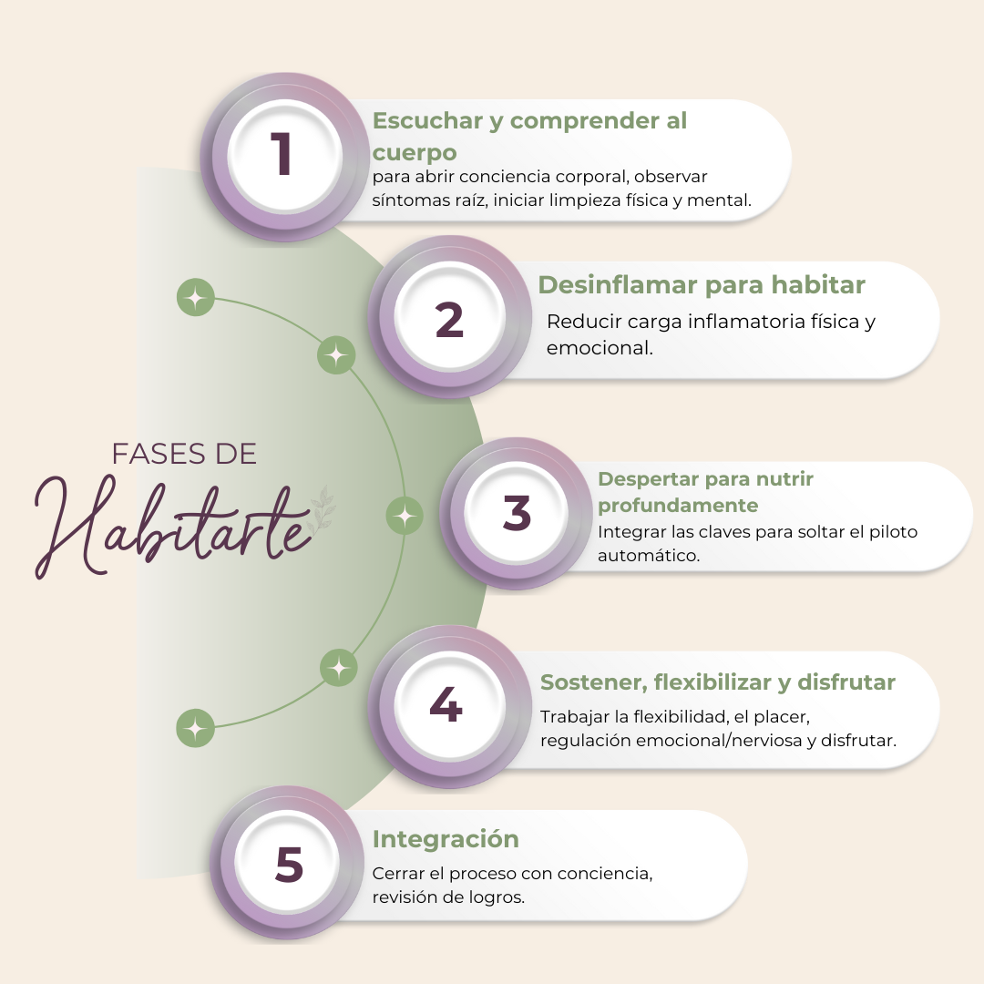 Es una experiencia grupal de 8 semanas para desinflamar, volver a tu cuerpo, a confiar en él, y a vivir una vida con más calma, alegría, buenas digestiones y bienestar integral.