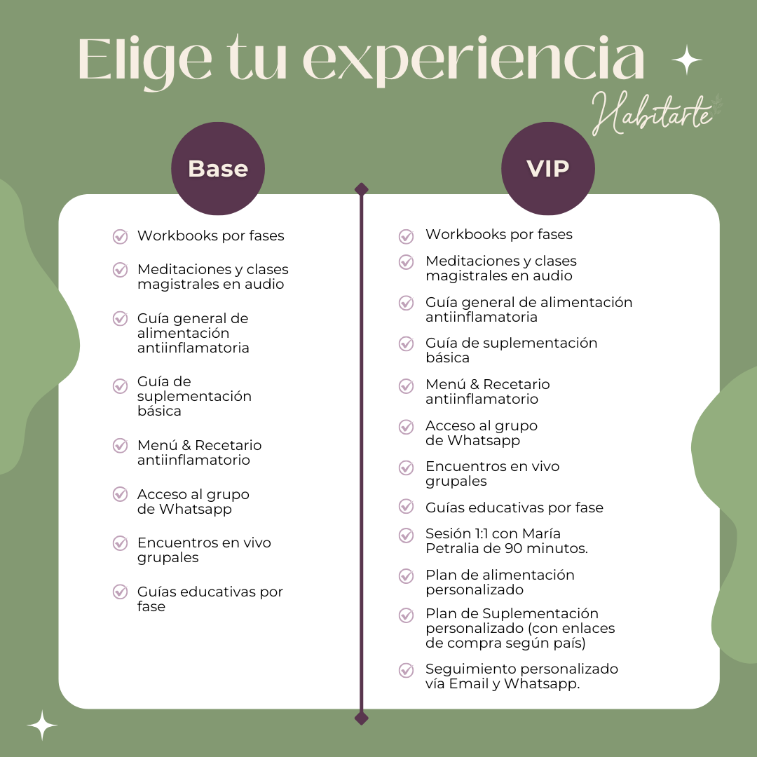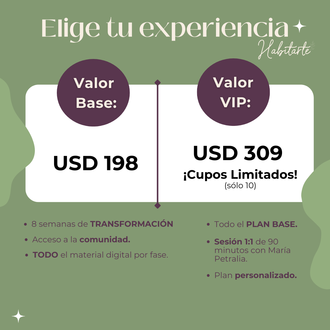 El proceso es grupal. La personalización profunda la puedes encontrar en Habitarte VIP.
